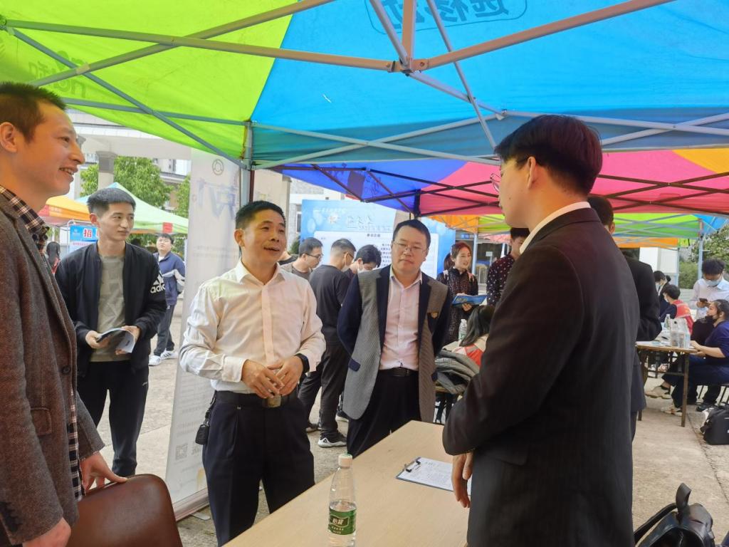经理何锦龙亲临现场指导与慰问,并与企业代表进行了亲切交谈,了解用人需求,勉励同学们要有自信,发挥三实品质,从基层做起,为社会做贡献,为母校争光。据统计,相当一部分毕业生与用人单位进行了现场签约。