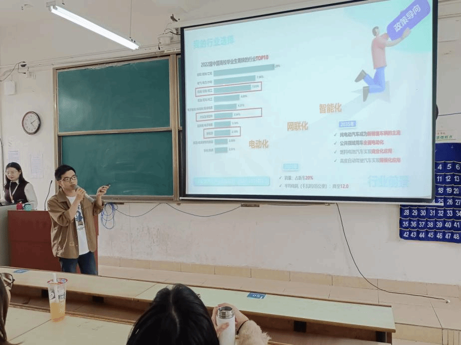 上一届“孚能班”优秀学员代表电气191班江华军同学详细讲述了自己在“孚能班”的学习经历、福利待遇和成长感悟。对孚能科技提供的学习机会表示感激,与孚能科技签订就业协议并愿意为企业创造价值、为公司争光。最后的提问环节,讲座现场反应热烈,互动频繁,同学们纷纷表示深感兴趣和深受启发。