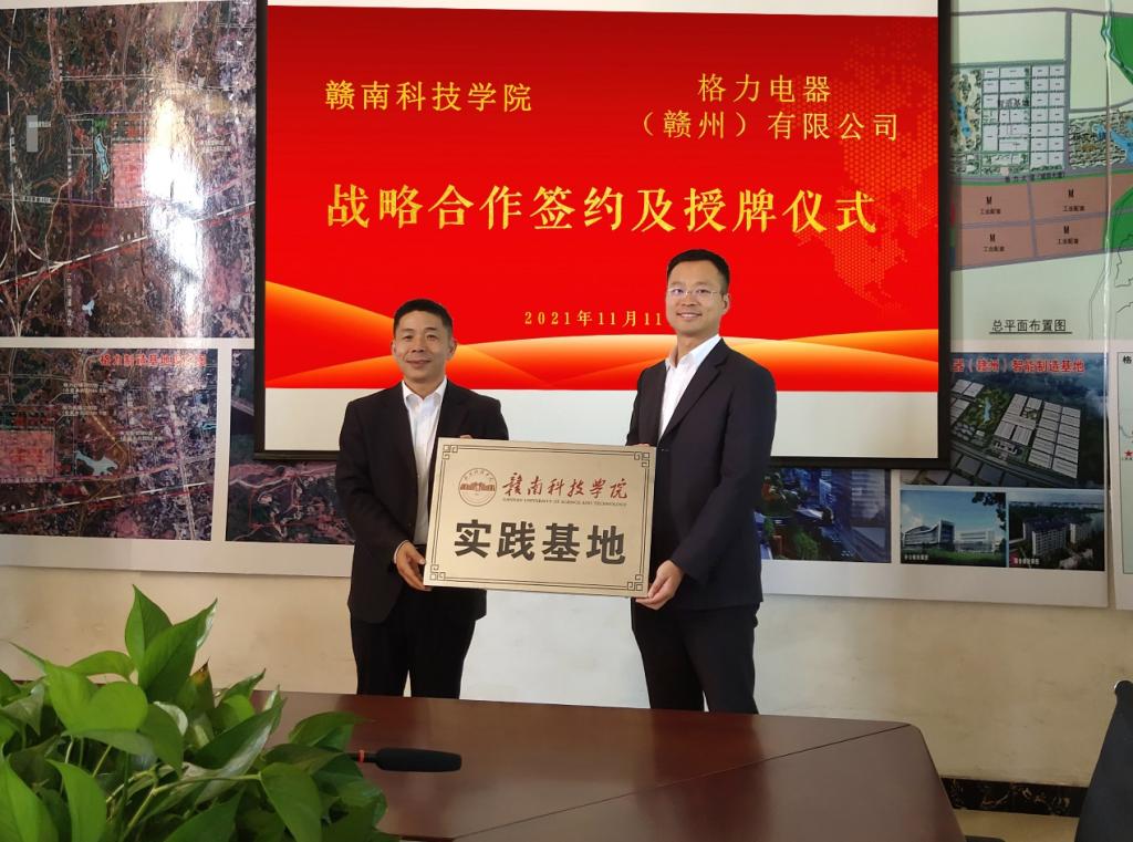 双方举行了签约与授牌仪式,方掩为公司授牌“格力电器(赣州)有限公司人才培养基地”,何锦龙为格力电器(赣州)有限公司授牌“best365足球官网实践基地”,付玉华与洪志勇双方代表签订了《校企合作协议》。之后,方掩带领参观了格力电器(赣州)智造基地。