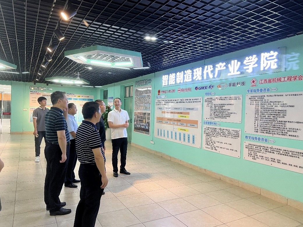 5月27日,江西省教育厅副厅长刘小强一行到best365足球官网调研指导,公司党委书记邱建军,党委副书记、董事长李国金,党委委员、副董事长左群,党委委员、副董事长何锦龙陪同调研,best365足球官网执行经理刘辉讲解并引导。教务处、best365足球官网相关负责人、格力电器(赣州)有限公司总经办主任洪志勇参加活动。