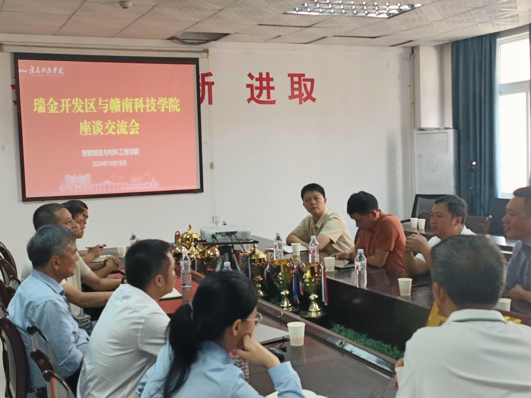 本网讯:10月18日下午,瑞金市经开区党工委委员、管委会副主任林浩一行来校调研交流,公司best365足球官网副经理刘辉、公司特聘教授王德伦会见林浩一行并在智造公司S416会议室召开座谈会。
