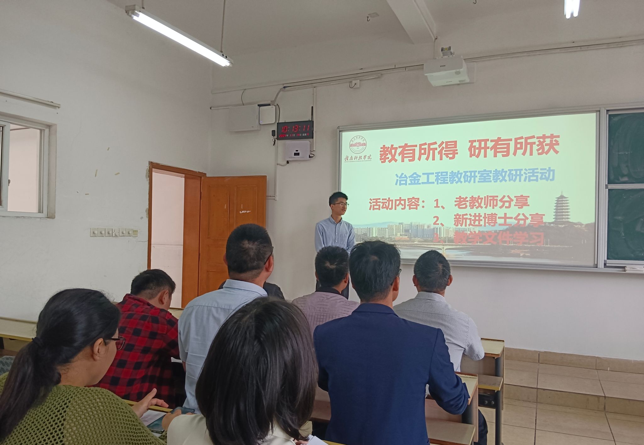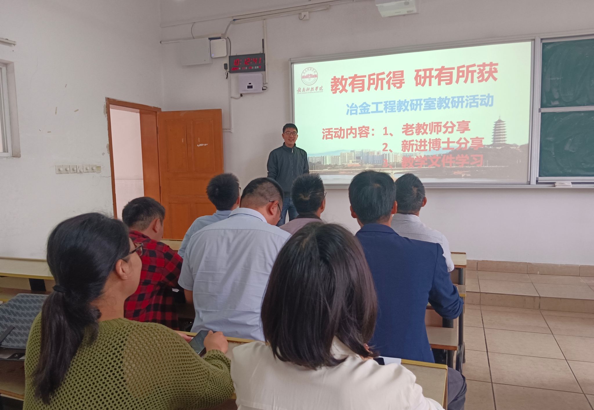 本网讯:为了整体提升专业教师的教学、教研及科研能力,加强教师之间的交流与学习,促进教师的专业化成长。11月12日下午,冶金工程教研室本着“学习、思考、交流、分享”的理念,在Z103开展教研室学习活动,全体教师参加了本次教研活动。