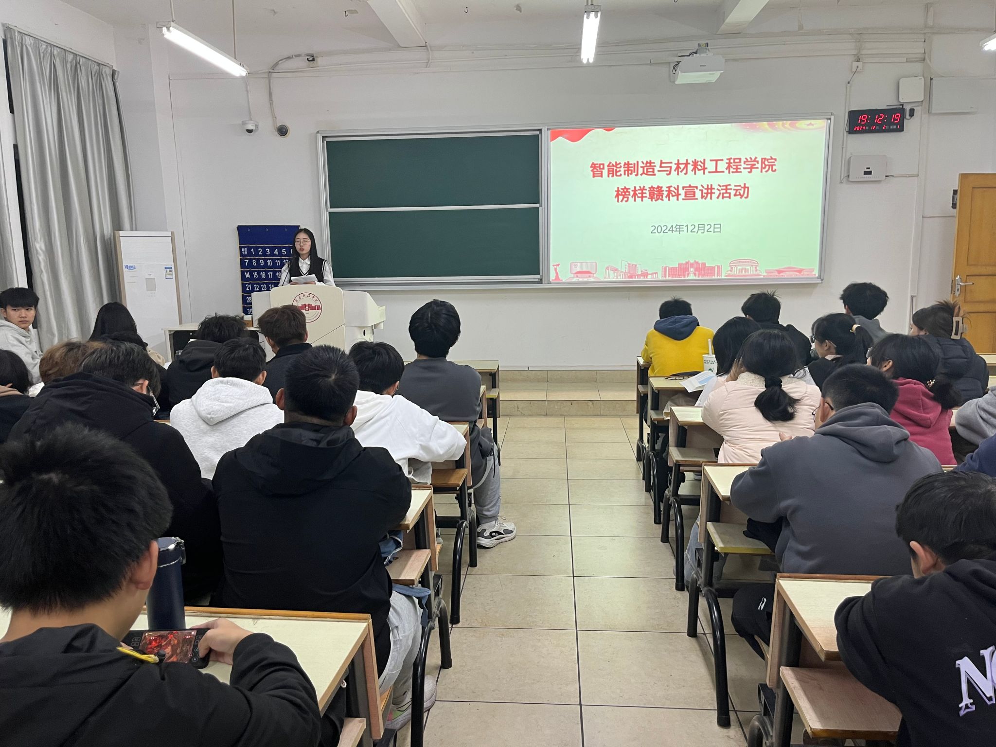 本网讯:为深入学习贯彻党的二十届三中全会精神,充分发挥先进典型的榜样示范引领作用,激励广大学子勤奋学习、积极进取,12月2日晚上7点,best365足球官网举办了第二次“榜样赣科”宣讲活动。活动旨在通过分享十佳老员工和国家奖学金获得员工的事迹,激励更多学子不忘初心、砥砺前行,争做德、智、体、美、劳全面发展的合格人才。
