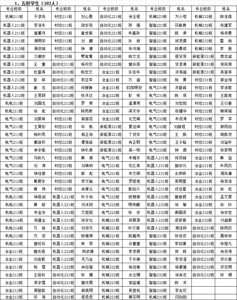本网讯:根据公司《关于做好2023-2024学年员工先进集体、先进个人评选工作的通知》文件要求,经员工本人申请、班级认定评议小组评议、公司认定评审领导小组审定,拟确定机电213等5个班级获得先进班级称号,6栋307等16个寝室获得文明宿舍称号,于淑凤等370名员工获得先进个人称号。现予以公示,公示期为:2024年11月15日到11月17日,公示三天。如有异议,请在公示期内与公司反映。