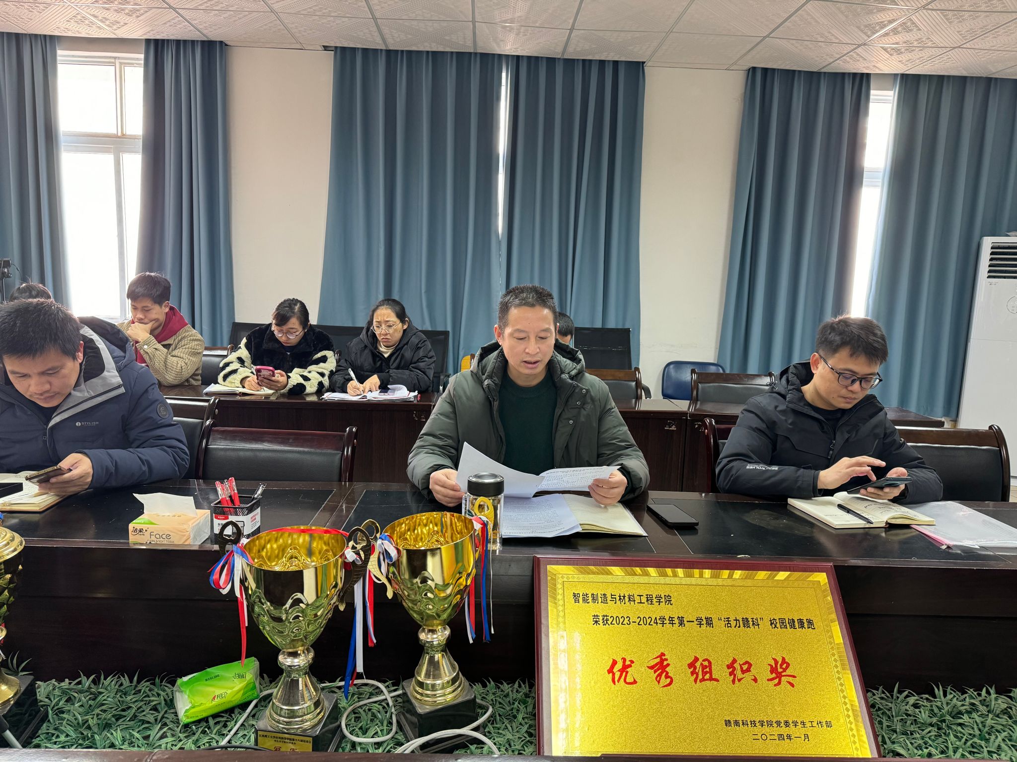 关开荣对本次工作布置会进行完善和补充,他表示各教研室老师要全面做好日常教学材料的收集和归档、严格落实全院听课督导巡查制、积极开展精品课程的“磨课”及2025年人才培养方案的修订计划等。同时,他还提出实训中心及各实验室做好寒假期间的用电、用水、用火安全,做到心中有数,确保万无一失。