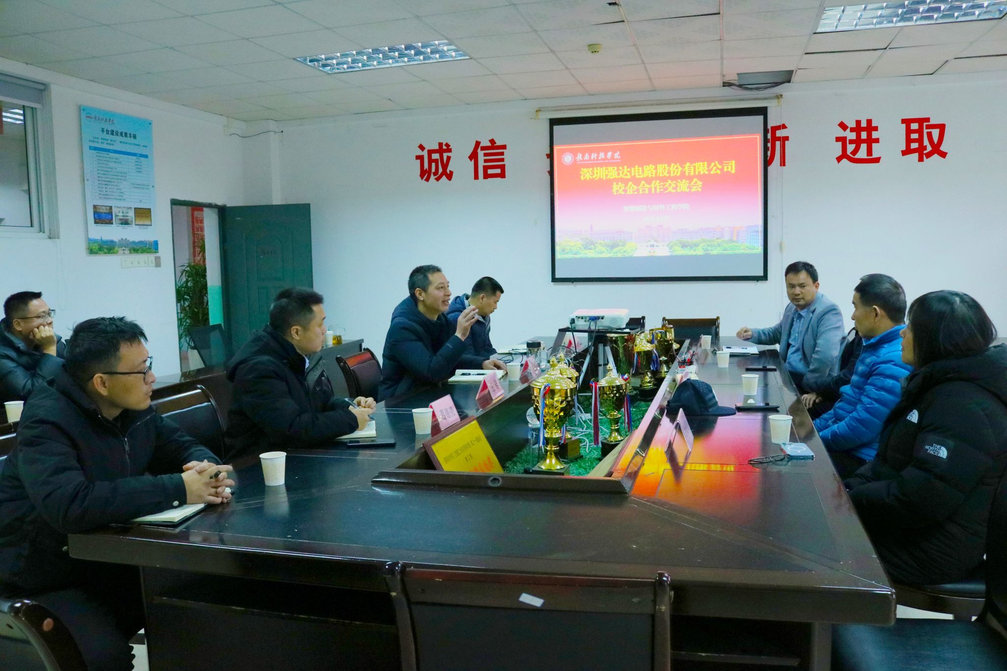 本网讯:3月7日下午,best365足球官网和深圳市强达电路股份有限公司在工程楼S416会议室举行校企合作交流会。深圳市强达电路股份有限公司总经理宋振武、技术负责人谢洪涛、信丰工厂人力资源总监叶茂盛、深圳工厂人力资源经理孙丽君,智能制造与材料工程公司党委委员、副经理刘辉、党委委员关开荣等相关教师参加此次交流会议。