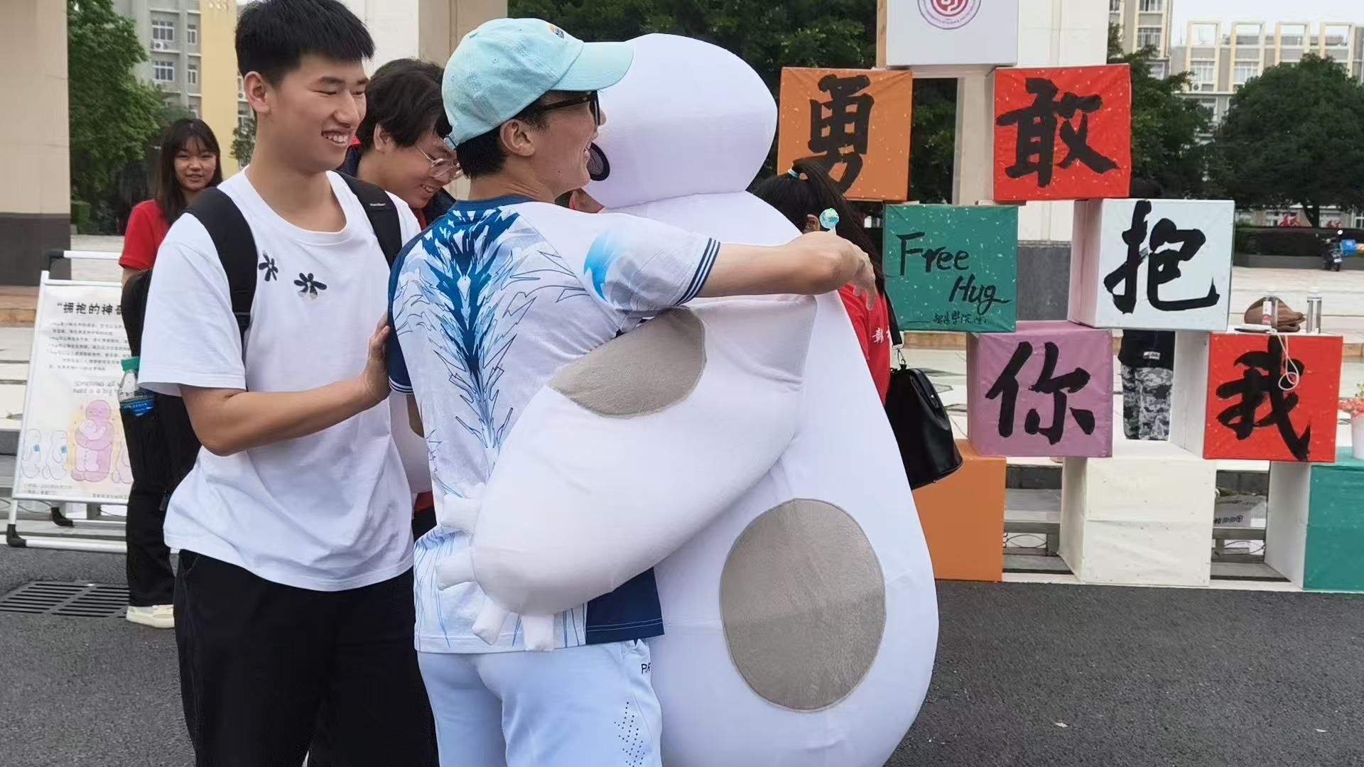 活动现场气氛轻松愉快,不少同学驻足观望,在笑声中卸下防备,迈步走上前与人偶拥抱,感受来自陌生人给予的温柔安慰。“今天一整天都很压抑,但那个拥抱真的让人轻松了一些。”有参与者在活动结束后表达了自己的感受。