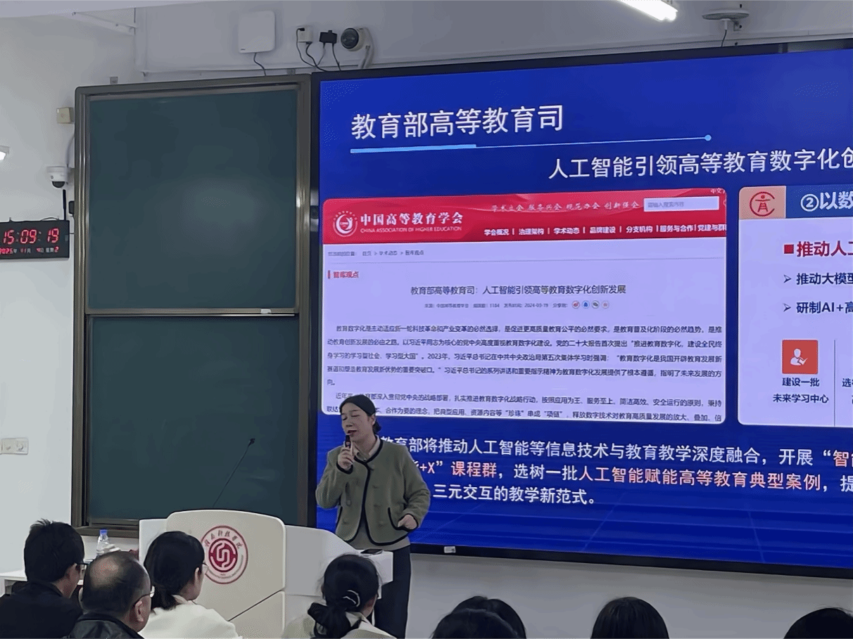 此外,邹艳华还介绍了AI技术在教学实践中的具体应用,如智能辅导、个性化学习路径规划等,使在场师生对人工智能赋能教育有了更直观和深刻的理解。
