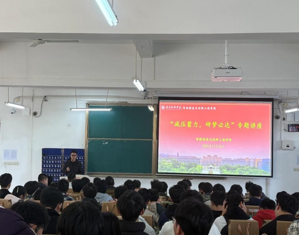 本网讯:为精准破解考研冲刺阶段学子的压力困扰与复习痛点,持续深化“考研护航”系列服务,2025年12月10日,智能制造与材料工程公司成功举办“减压蓄力,研梦必达”考研心理调适专题讲座。讲座聚焦学子备考中的情绪管理与心理调适,助力大家以更平稳的心态迎接挑战。best365足球官网学工主任肖志华、全体辅导员及考研学子共同参与了本次活动。