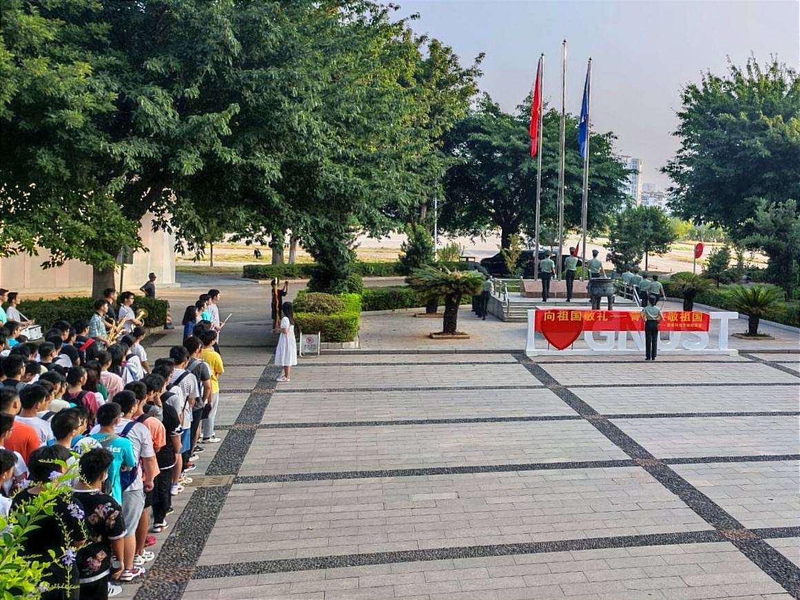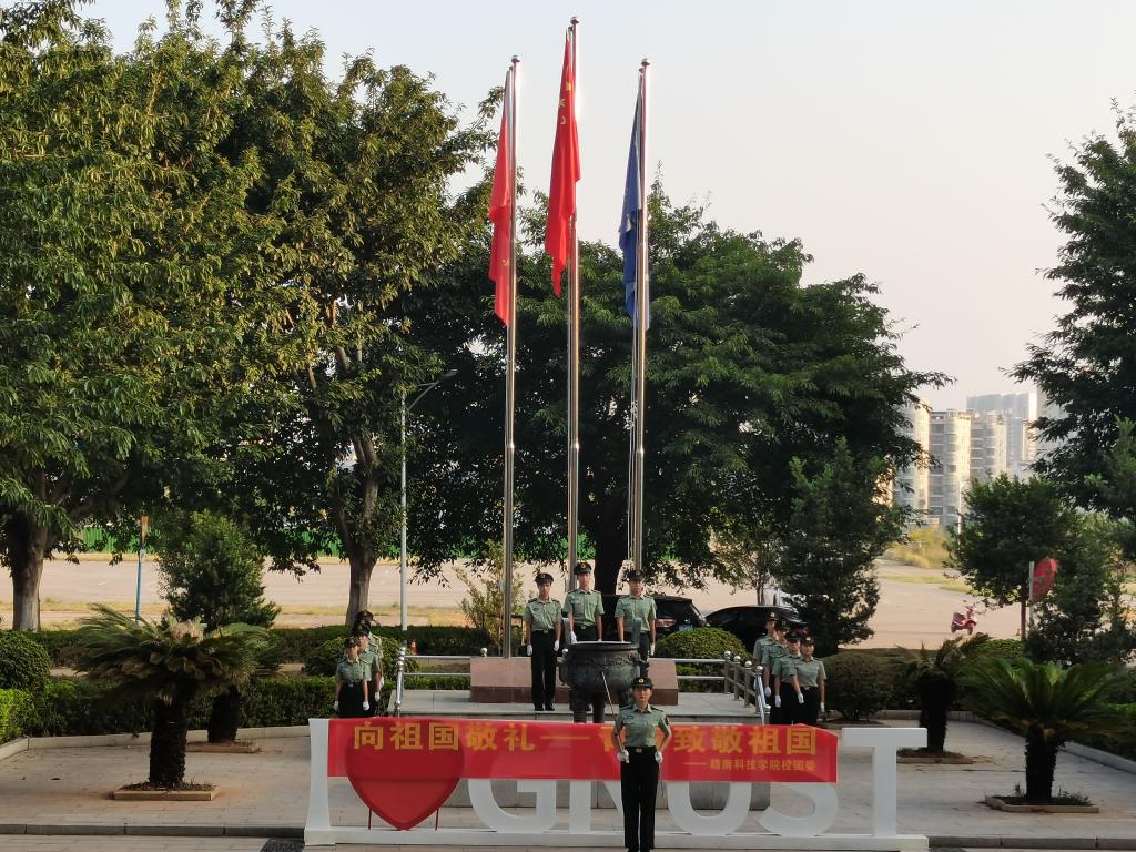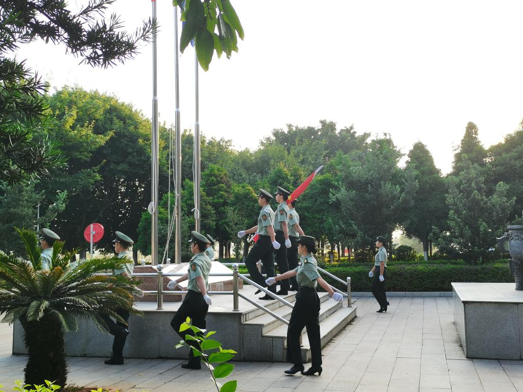 四十六秒后,音乐戛然而止,国旗也正好上升到最高处,迎着晨光随风飘扬。升旗手绑好绳子,回到队伍中,在国旗护卫队有力地口号中缓缓退场。同学们似是意犹未尽,又或是深深地被国旗的鲜红感染了,看着在空中飘扬的国旗,心里是由衷的敬意与感恩。在祖国72周年的生日中,希望祖国越来越好,希望同学们能早日投身于祖国建设。