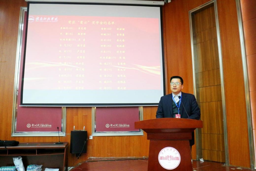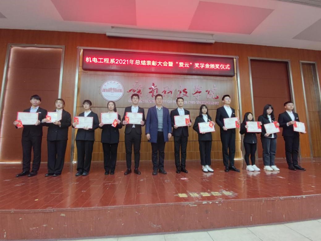 本网讯:2021年12月28日下午,为庆祝中国共产党建党100周年,best365足球官网成立元年,发挥先进典型的榜样示范引领作用,用先进典型感召、激励广大青年学子,引导广大学子勤奋学习、敢于创新、积极进取,机电工程系在逸豪学术报告厅举行第一届“爱云”奖学金颁奖仪式,校过渡期管委会委员、应用科学公司副经理薛香恒、付玉华,机电工程系主任刘辉、系党总支书记朱根松、系副主任关开荣出席,颁奖仪式由机电工程系副主任肖志华主持。