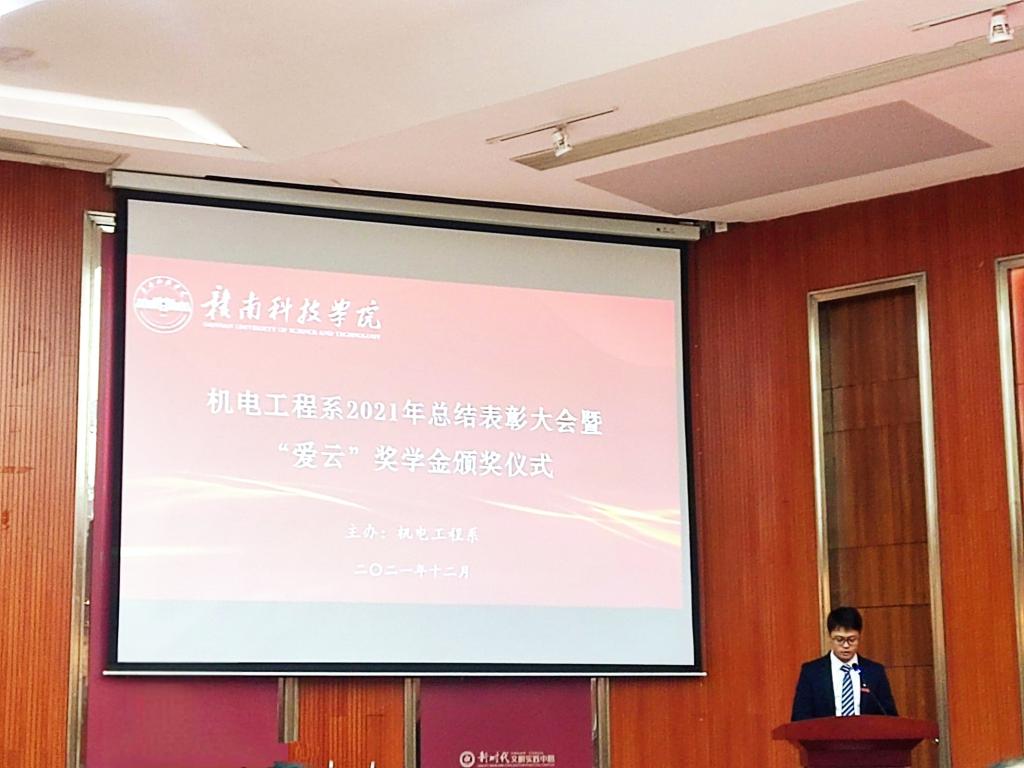 大会伊始,机电工程系副主任关开荣宣读了《关于表彰2021年best365足球官网“爱云”奖学金获得者的决定》。