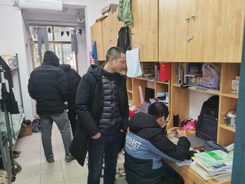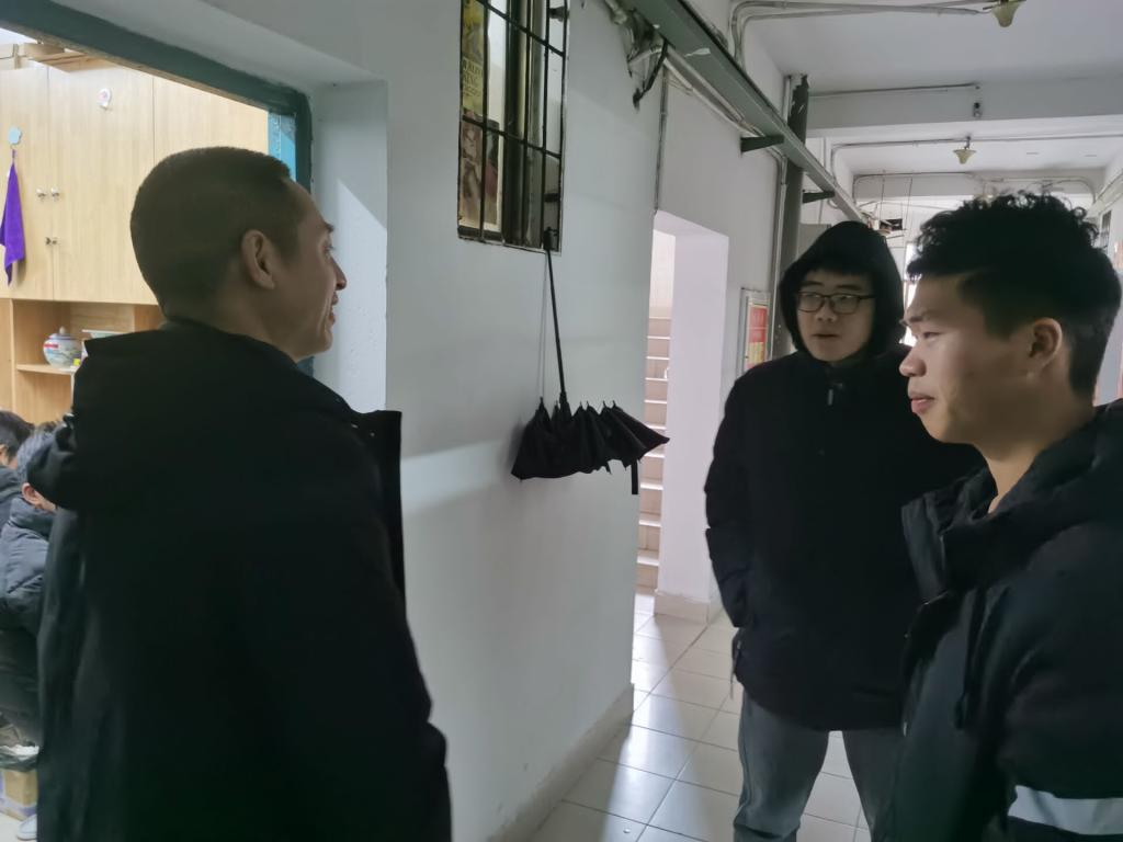 在走访过程中,老师们详细了解了员工们的返校情况,检查了员工寝室卫生情况、排查宿舍安全隐患,通过和员工面对面的交谈,及时了解员工假期思想动态及新学期的学习计划。临行前,刘辉主任鼓励员工们以梦为马、奋发图强,以积极向上的心态,用勤奋和刻苦为青春增色添彩。肖志华副主任嘱咐员工们在疫情防控期间做好卫生防护,平时多开窗通风、勤打扫卫生,养成良好生活习惯,保持良好的宿舍环境卫生。