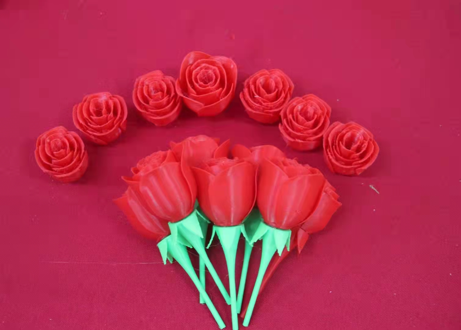 制作3D玫瑰花,首先通过三维画图软件设计出玫瑰花的模型,再将模型导入3D打印机中,然后添加专用材料,并细心粘连花瓣与花梗,便制作出这一朵朵永不凋谢的3D玫瑰花。3D动力协会会长,机械202班赖盛昊同学在制作3D玫瑰花时讲到,“十年树木,百年树人,老师们的教诲之恩让我们终生难忘,送给老师一朵永不凋谢的玫瑰花,表达老师对我们的辛苦栽培以及谆谆教诲的感激之情,同时给予老师最美好的祝愿,愿您每天开心,桃李满天下”。此次创意得到公司女教师们的一致赞扬,学工办魏彩军和王莹蓥老师收到玫瑰花后,还在朋友圈中表示“来自3D打印协会永恒的爱,祝圈里的美女们女生节快乐”。