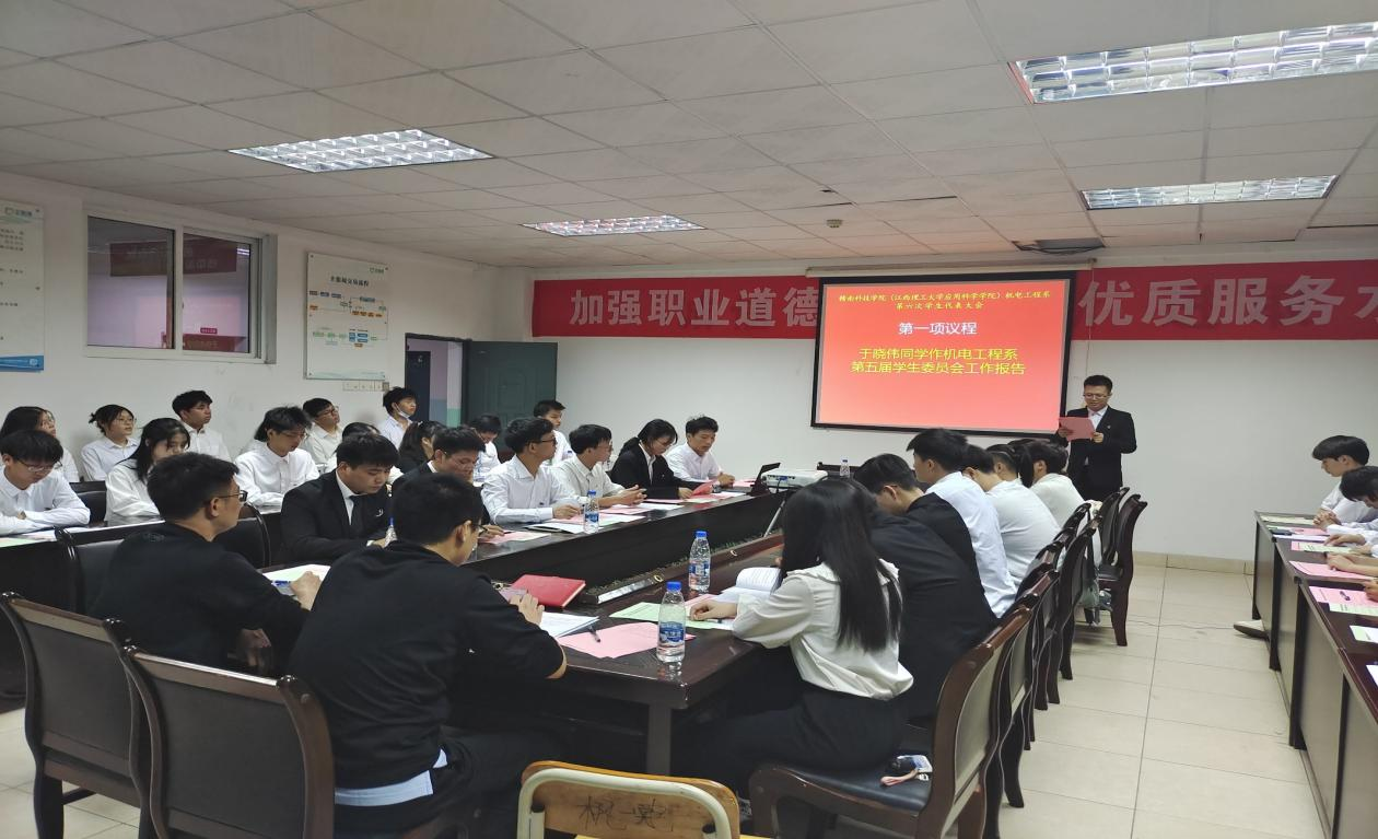 此次学代会共包含三场会议,分别为预备会、开幕式和正式会议。会议议程包括奏唱国歌、刘辉致总结词、肖志华致开幕词、员工会执行主席于晓伟同学作《best365足球官网机电工程系第五届员工委员会工作报告》、选举机电工程系第六次员工代表大会常任代表、选举参加第五次校学代会代表及常任代表、讨论通过《机电工程系员工会章程》等各项议程。