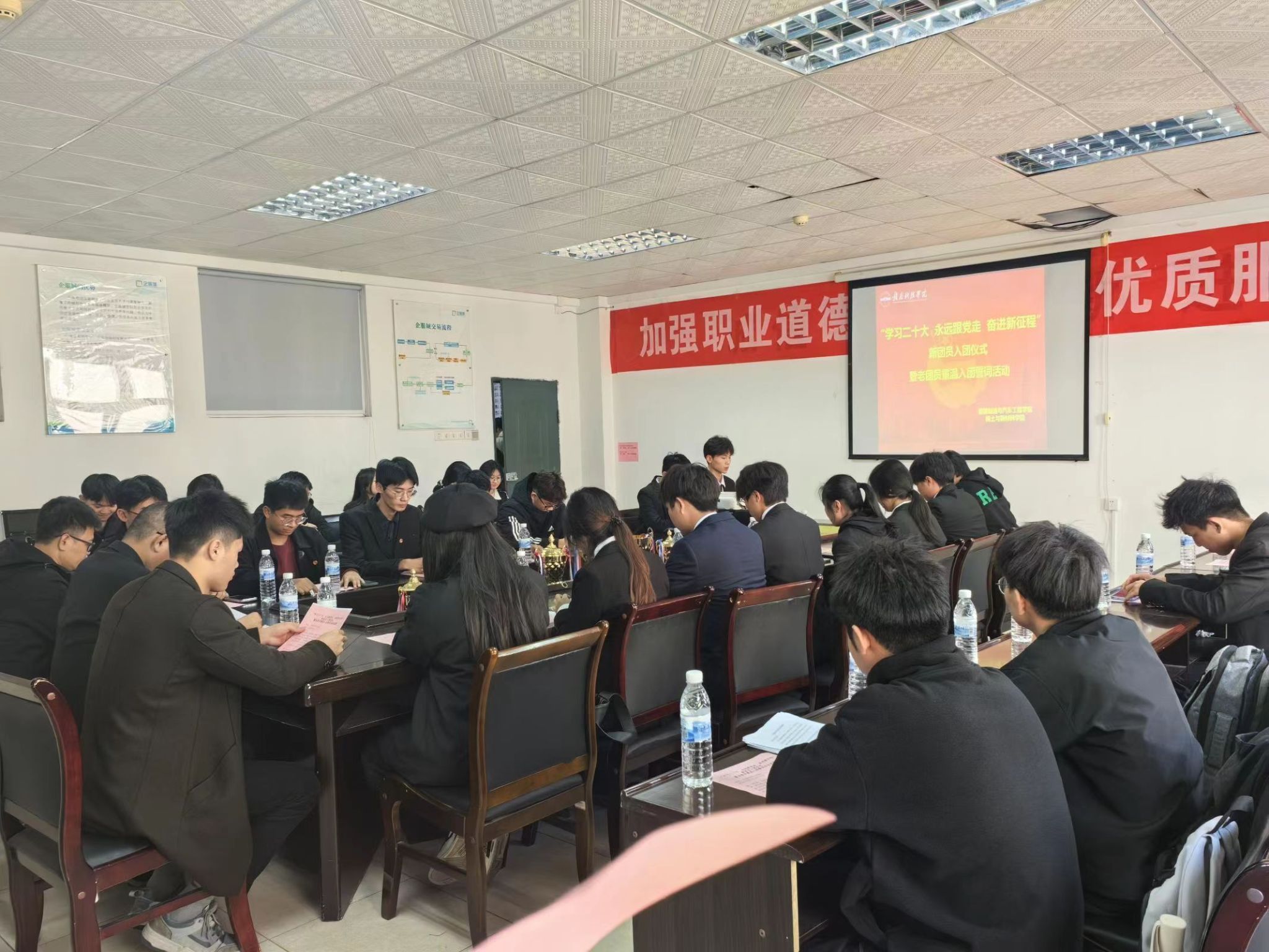 本网讯为深入学习党的二十大精神,传承和弘扬五四精神,团结引领青年员工自觉培育和践行社会主义核心价值观,坚定不移跟党走,建功新时代。2023年127午,机电工程系在工程院s416A举行2023年机电工程系新团员入团仪式暨老团员重温入党誓词活动,机电工程系党总支书记朱根松、机电工程系副主任肖志华、机电工程系团总支书记卢名亮及各班团支书出席仪式。