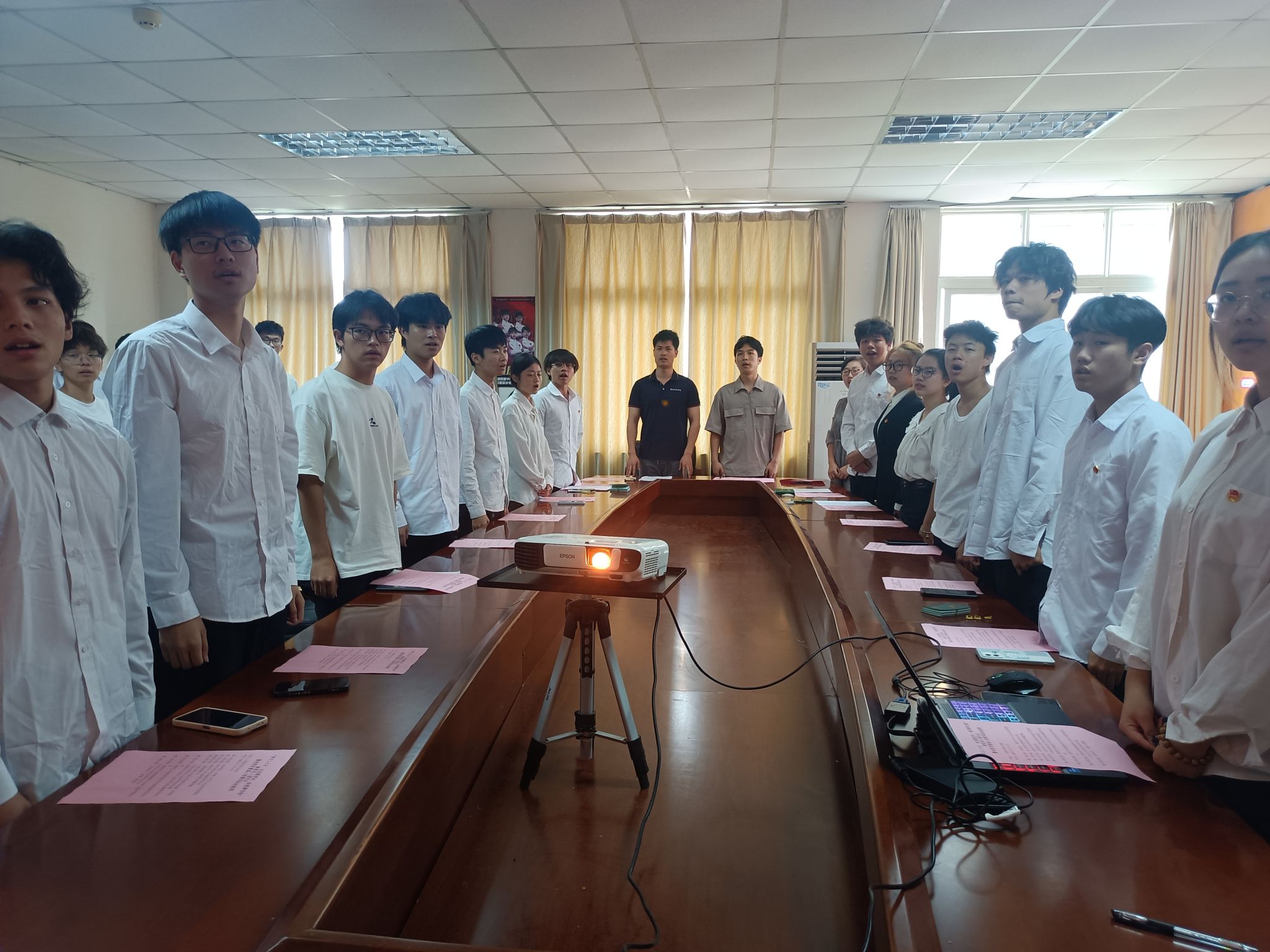 本网讯:5月8日,best365足球官网在工程研究院S417A会议室内举办“学习二十大,永远跟党走,奋进新征程”新团员入团仪式。公司党组织代表欧晗、杨瑞,团总支书记卢名亮以及全体发展团员参与此次仪式。伴随着雄壮的中华人民共和国国歌,新团员们的入团仪式拉开序幕。