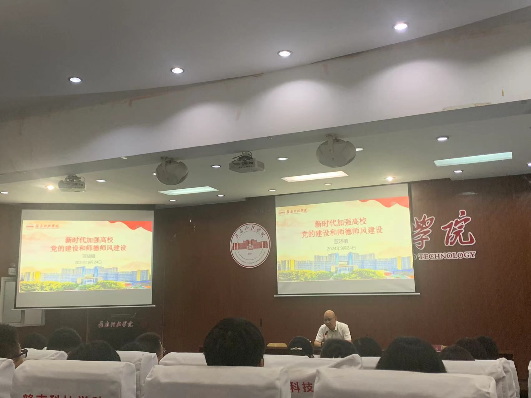 本网讯:为深入学习贯彻党的二十大和二十届二中、三中全会精神和习近平总书记考察江西重要讲话精神,学习领会《中共中央国务院关于弘扬教育家精神加强新时代高素质专业化教师队伍建设的意见》,全面贯彻党的教育方针,紧抓立德树人根本,着力提升教师思想政治教育素质及职业道德水平。9月24日下午,公司党委委员、组织人事部部长蓝晓植在MBA学术报告厅为best365足球官网教师作“新时代加强高公司党的建设和师德师风建设”专题讲座。