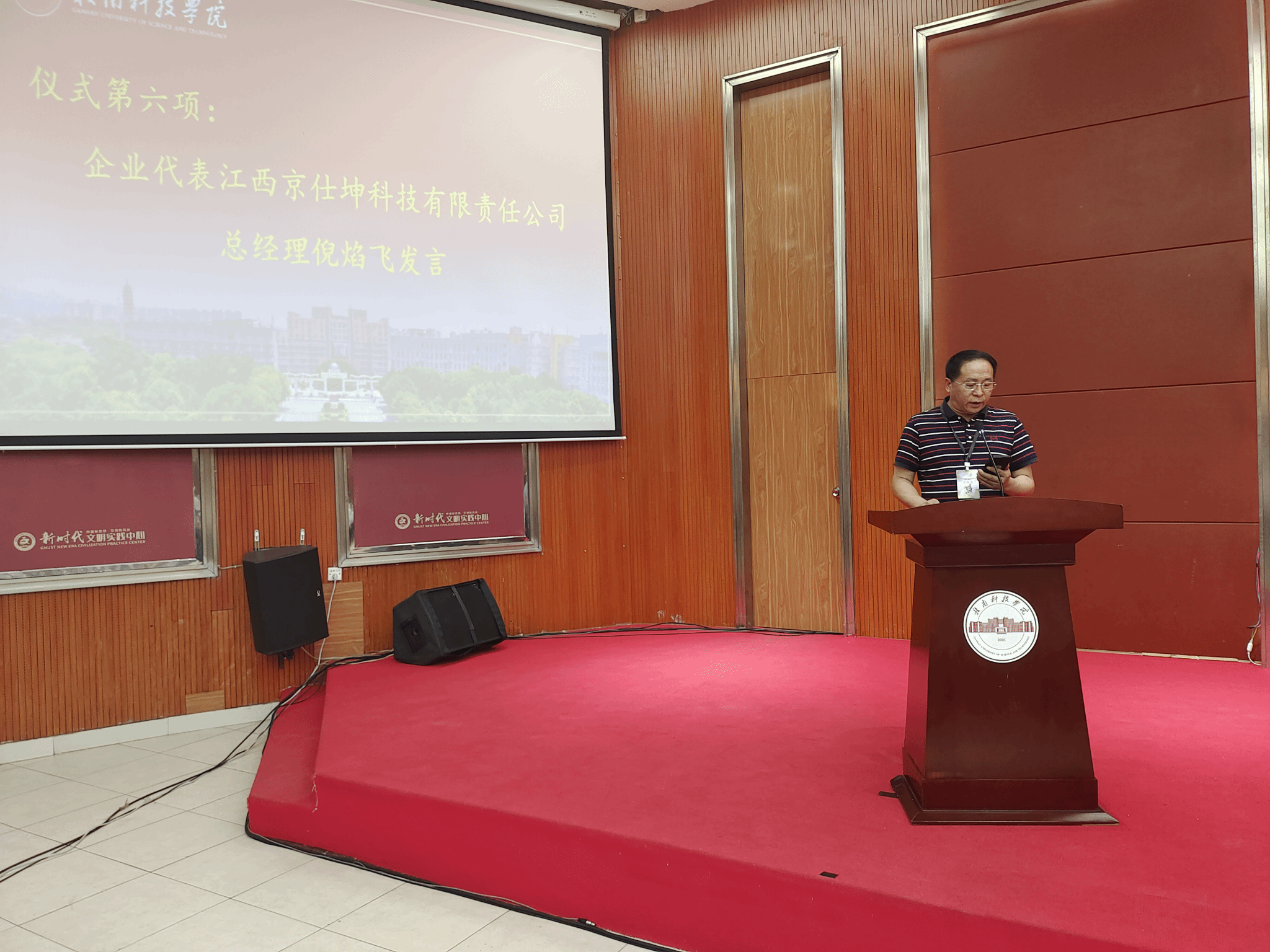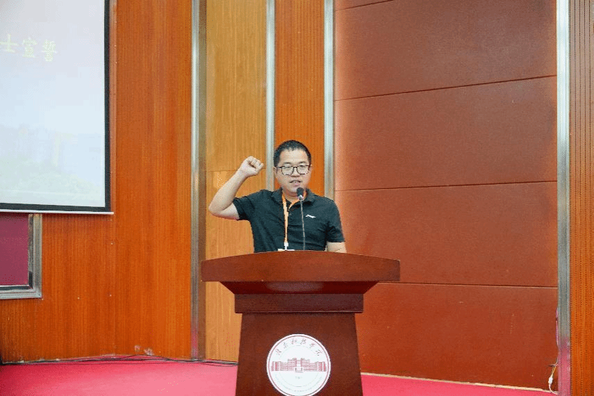 裁判(评委)代表张啟晖博士、参赛选手刘康同学相继宣誓,随后由企业代表江西京仕坤科技有限公司总经理倪焰飞发言。最后由赣南科技公司党委委员、副董事长左群宣布大赛开幕,并预祝“3023年中国机器人大赛暨RoboCup机器人世界杯中国赛华南赛区(赣粤闽)赛”取得圆满成功。