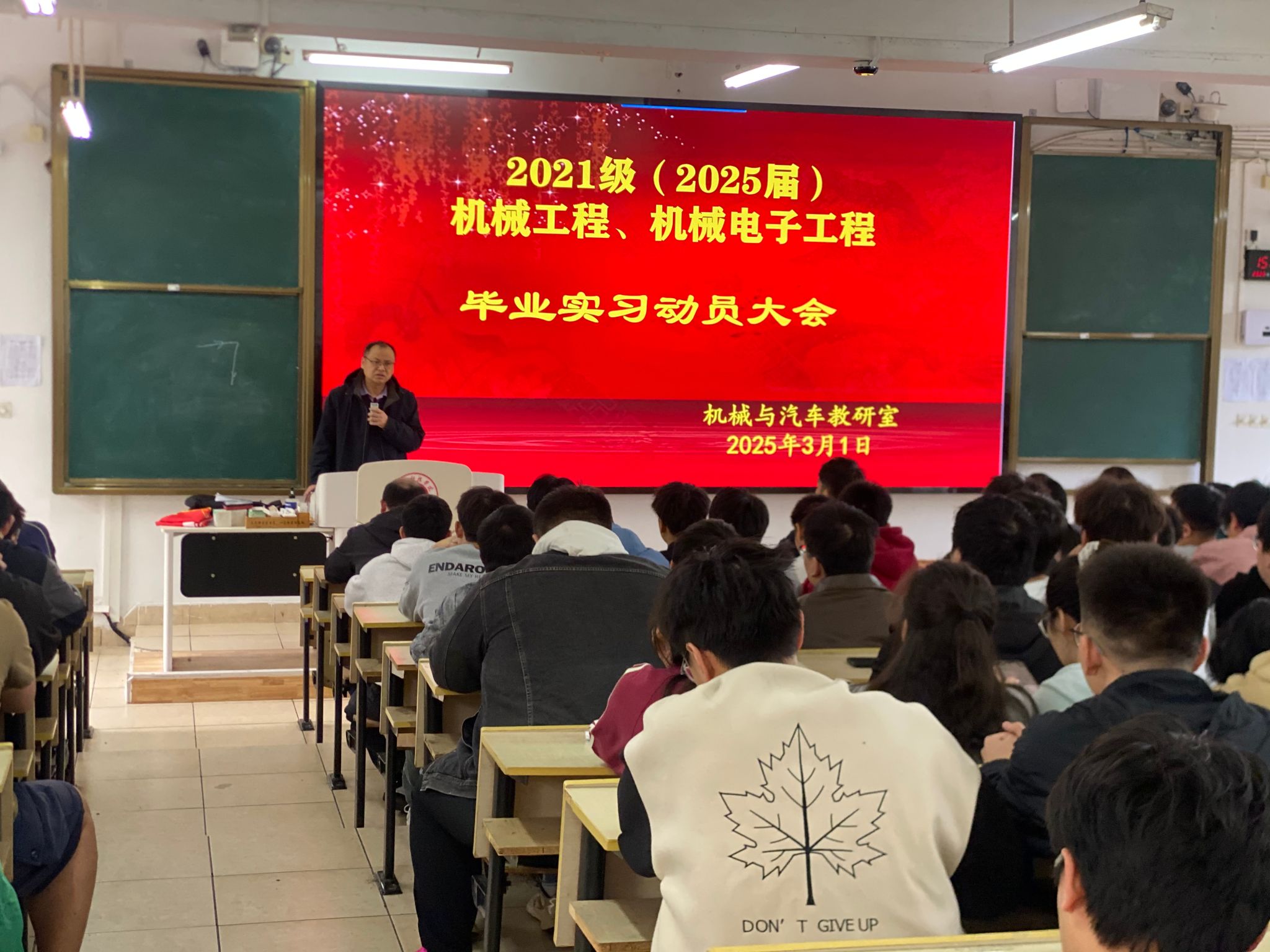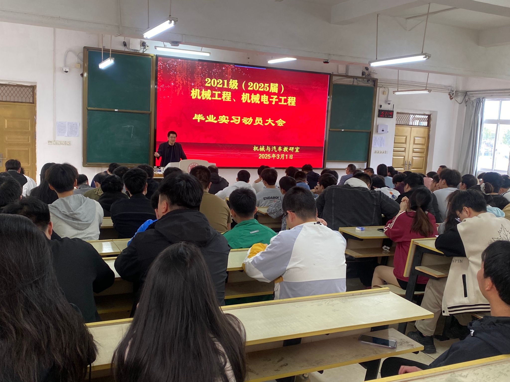 本网讯:3月1日下午,best365足球官网机械与汽车教研室在教学主楼Z1D1教室召开了2021级员工毕业实习动员大会。公司党委委员关开荣、机械与汽车教研室主任刘伟,副主任刘斌、实习带队教师以及机械211班、机电211班、机电212班、机电213班、机电214班员工参加动员大会,会议由刘伟主持。