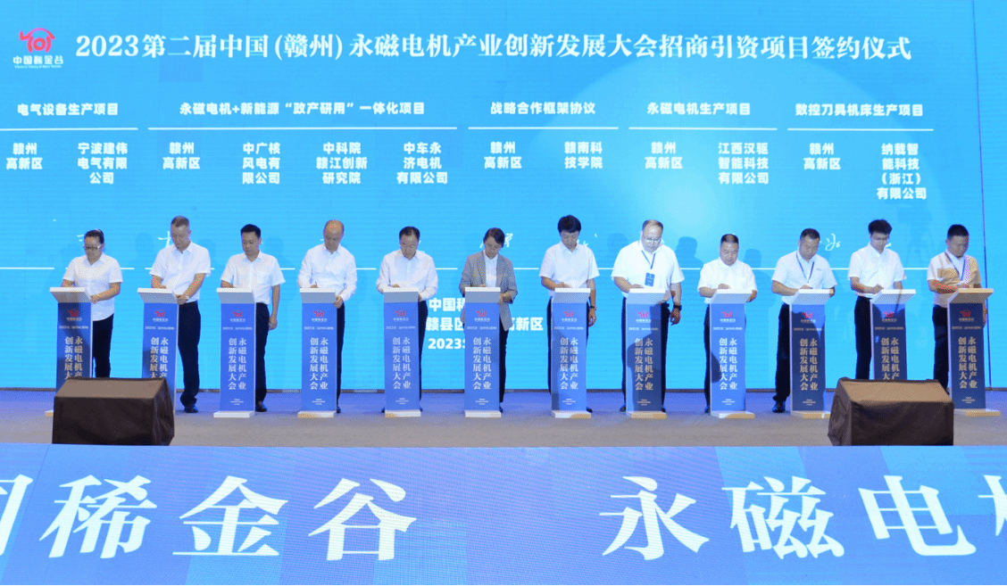 本网讯:8月19日,公司与赣县区人民政府/赣州高新区管委会合作框架协议签约仪式,在2023第二届中国(赣州)永磁电机产业创新发展大会上举行,副董事长左群与赣县区委副书记、区长、赣州高新区党工委副书记、管委会主任刘文彦分别代表双方签约。