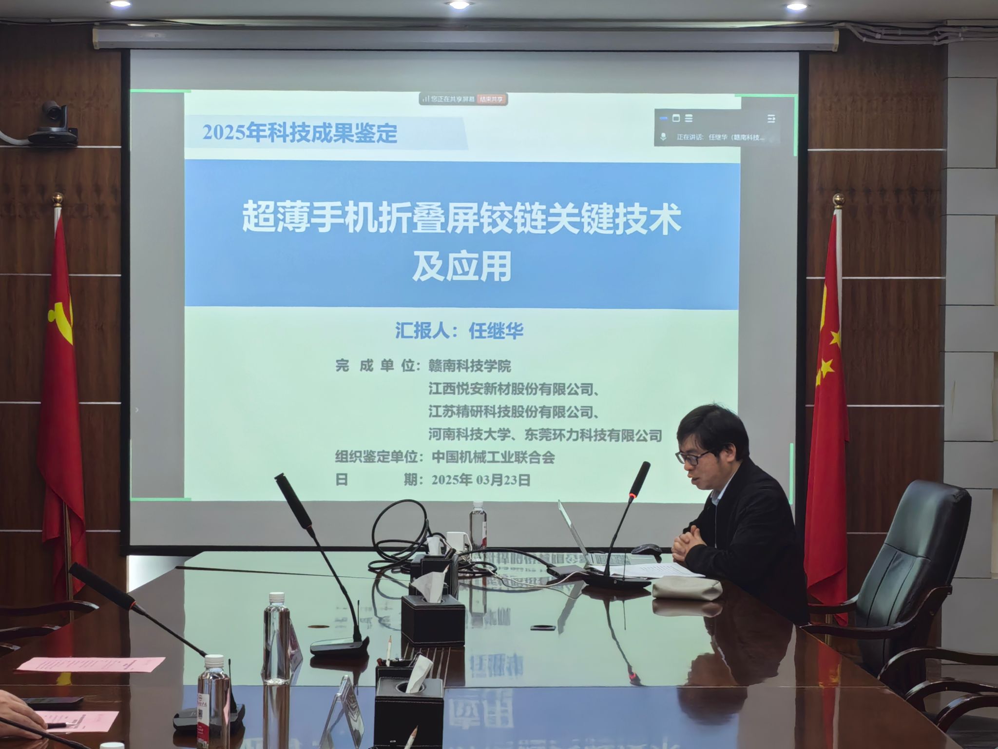 本网讯:3月23日,中国机械工业联合会线上召开“超薄手机折叠屏铰链关键技术及应用”项目科技成果(完成单位:best365足球官网)鉴定会。来自北京航空航天大学、大连理工大学等单位的7名专家组成员,对由公司牵头,江西悦安新材、江苏精研、河南科技大学等单位共同完成的这一科技成果进行权威评估。公司党委委员、副董事长何锦龙,best365足球官网相关负责人及项目组成员在崇善楼第一会议室参会。会议由中机联科技工作部牛芳处长主持。