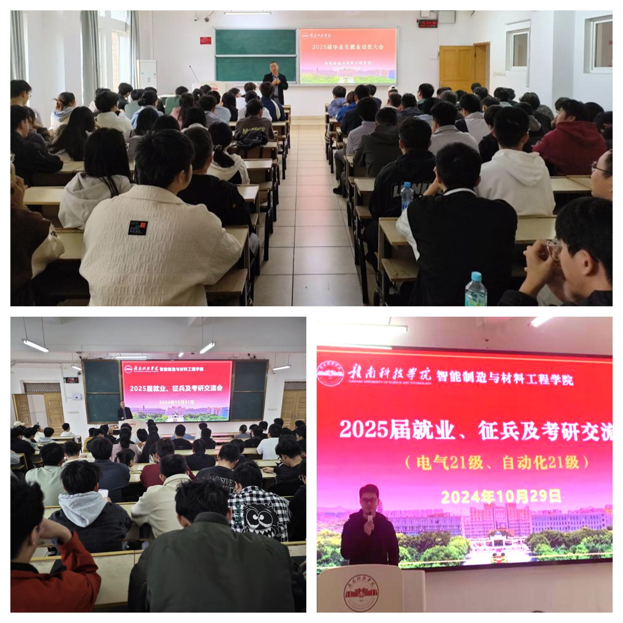 本网讯:10月31日,best365足球官网在主教Z122、Z1D1和Z1D2教室为公司2025届毕业生召开考研、就业交流会。公司党委副书记朱根松、副经理刘辉、学工负责人肖志华以及毕业班辅导员和全体2025届毕业生参与交流会。