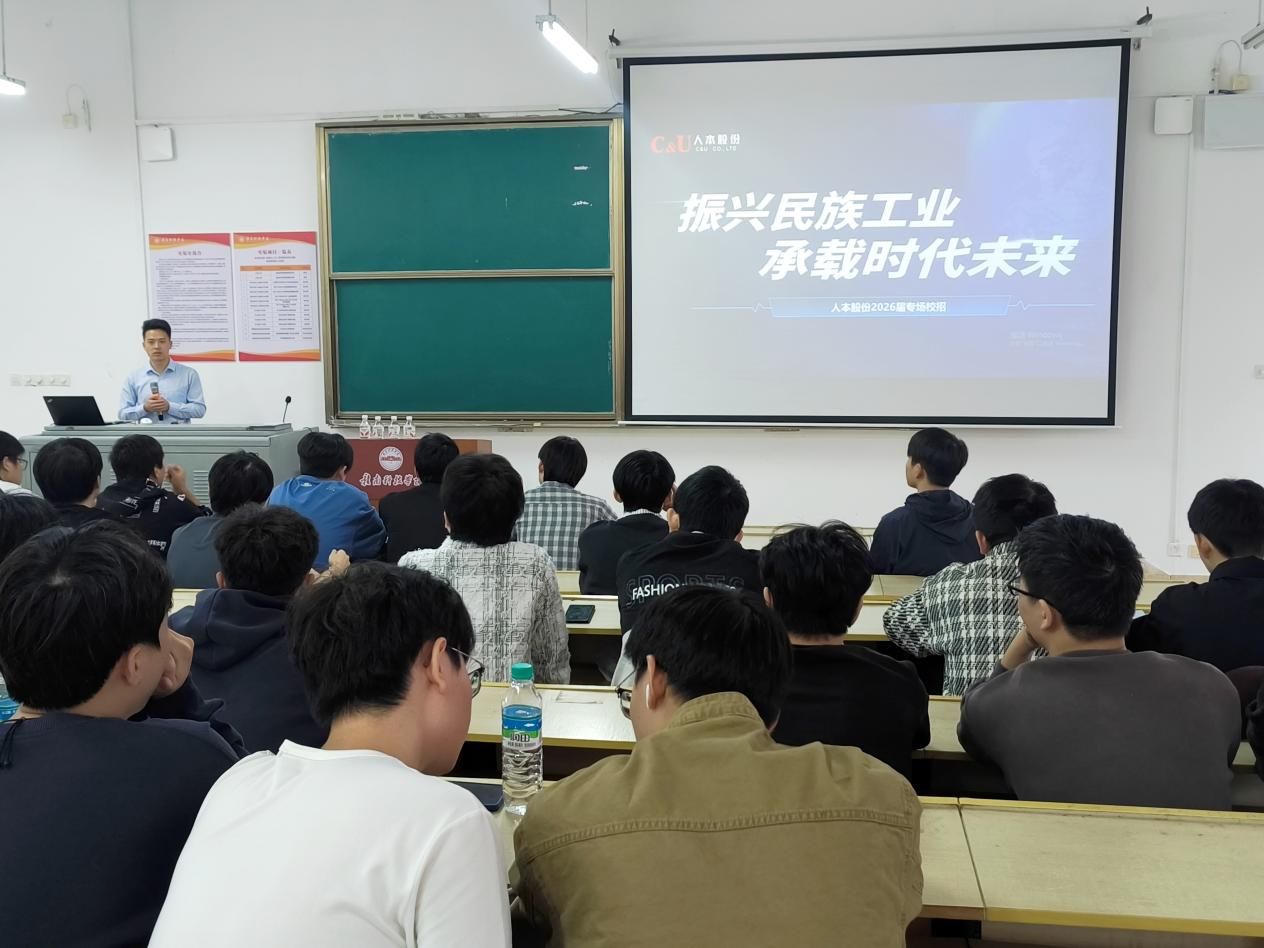 本网讯:10月20日,人本股份有限公司于best365足球官网教学楼主楼Z0D1室顺利举办了专场校园招聘宣讲会。人本股份有限公司招聘人事负责人李艳磊以及部分2026届毕业生参与了此次活动。