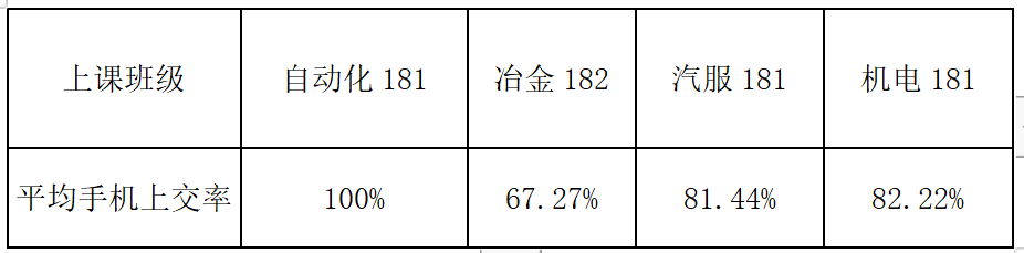 从数据来看,自动化181班手机上交率较高,表现良好,希望能够继续保持!