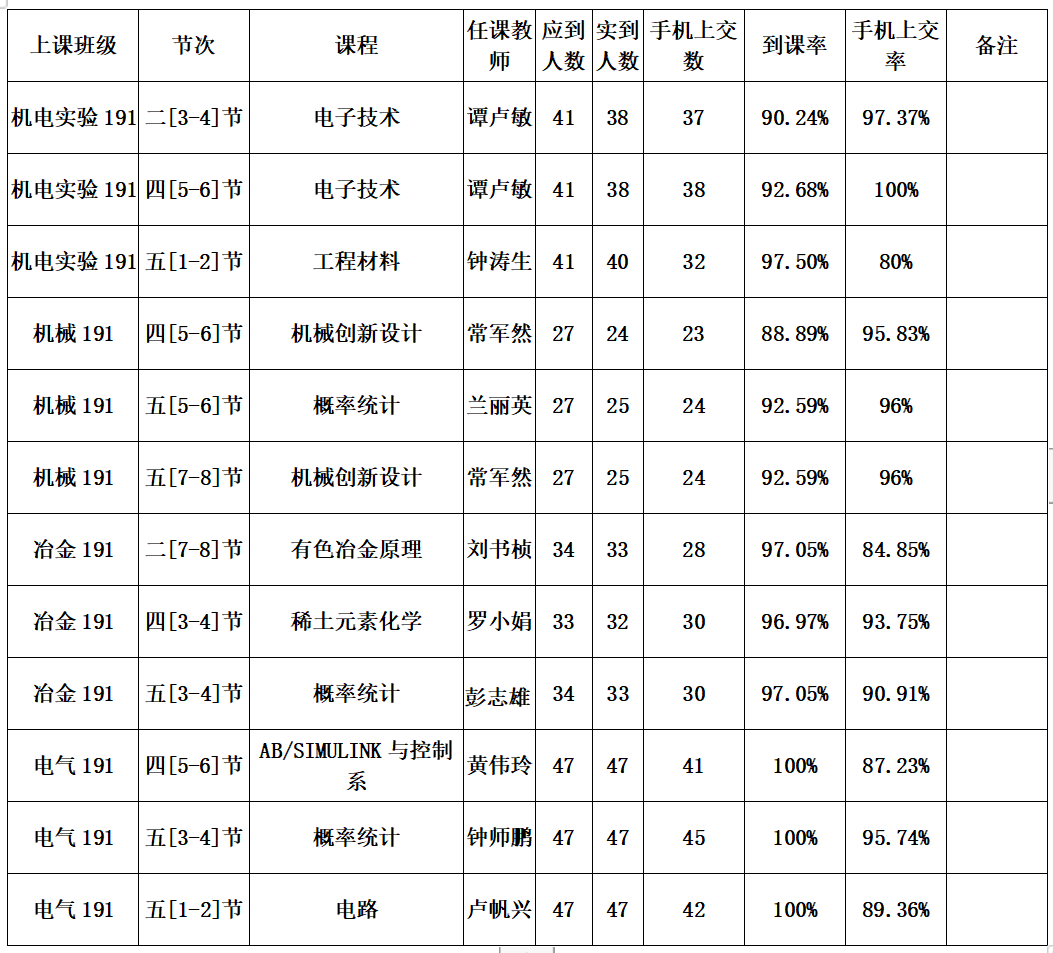 一、第六周抽查到课率情况通报